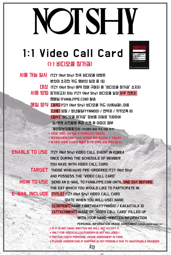 ITZY <Not Shy> PRE-ORDER EVENT CARD 안내