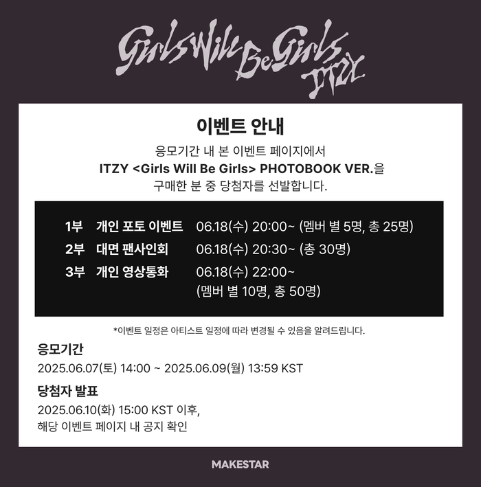 ITZY <Girls Will Be Girls> Photo Event & FanSign & Video Call NOTICE